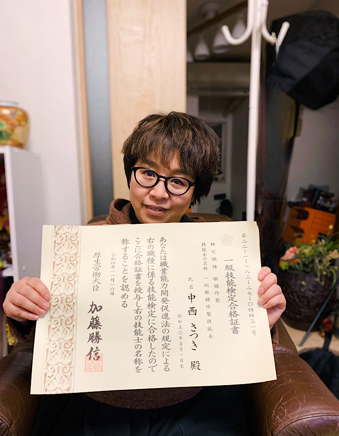 日本眼鏡技術専門学校 通信教育卒業。 公益社団法人 日本眼鏡技術者協会 S級認定眼鏡士 取得