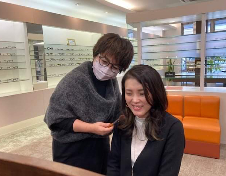 眼鏡を掛けていても、周りからできるだけ綺麗に見られたいし、掛け心地も、見え心地も大事です。今までの自分から、ひとつ上の階段をのぼる気持ちで、受け入れる事が大切だ思いました。教えて頂いた強度近視のメイクも、最初は少し濃いかもしれないと思ったんです。でも、私が見慣れていないだけだと、理解するのに少し時間がかかりました。今までの自分に慣れ過ぎていて、自然と今までの自分に戻りたい、戻らないと落ち着かない…と思ったのかもしれません。