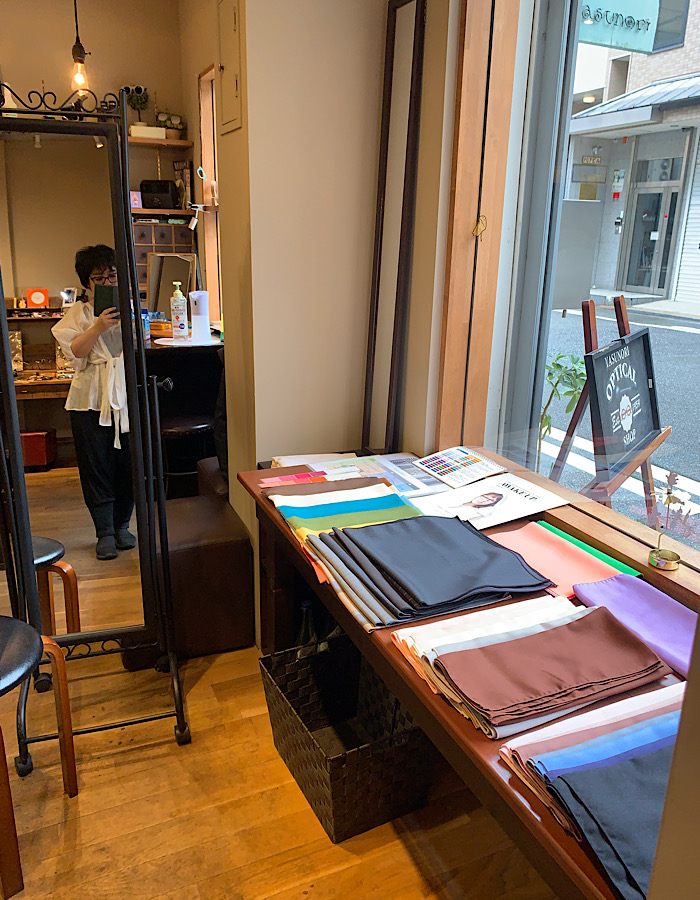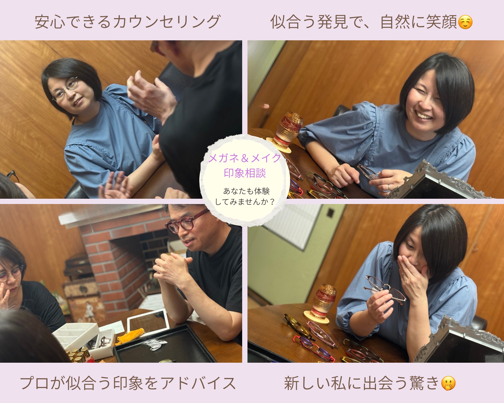 私は眼鏡とメイクの関係について研究をし、お客様の声をヒントに、自分らしく美しくみえるメガネの選び方やメイク法を試行錯誤しお伝えすることを始めました。