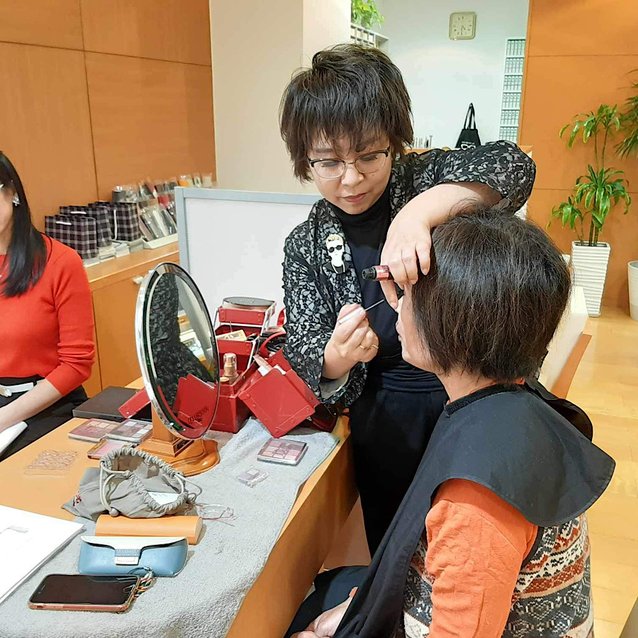 眼鏡販売店舗や美容専門学校、化粧品企業、公共施設、民間団体などにて「メガネ+メイク」のビューティーイベントを随時開催しています。今まで知り得なかった知識やノウハウ、メガネメイク法をお伝えしています。参加者の皆様が、今まで以上にもっとメガネが好きになれるイベントです。