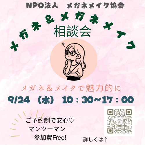 代表中西が、メイクアーティストとして眼鏡で魅力的になるをお伝えするイベントが、コロナ禍をこえ3年ぶりに開催されます。当協会も、後援しています。先日リアルにお会いするのは3年ぶりで、お店…